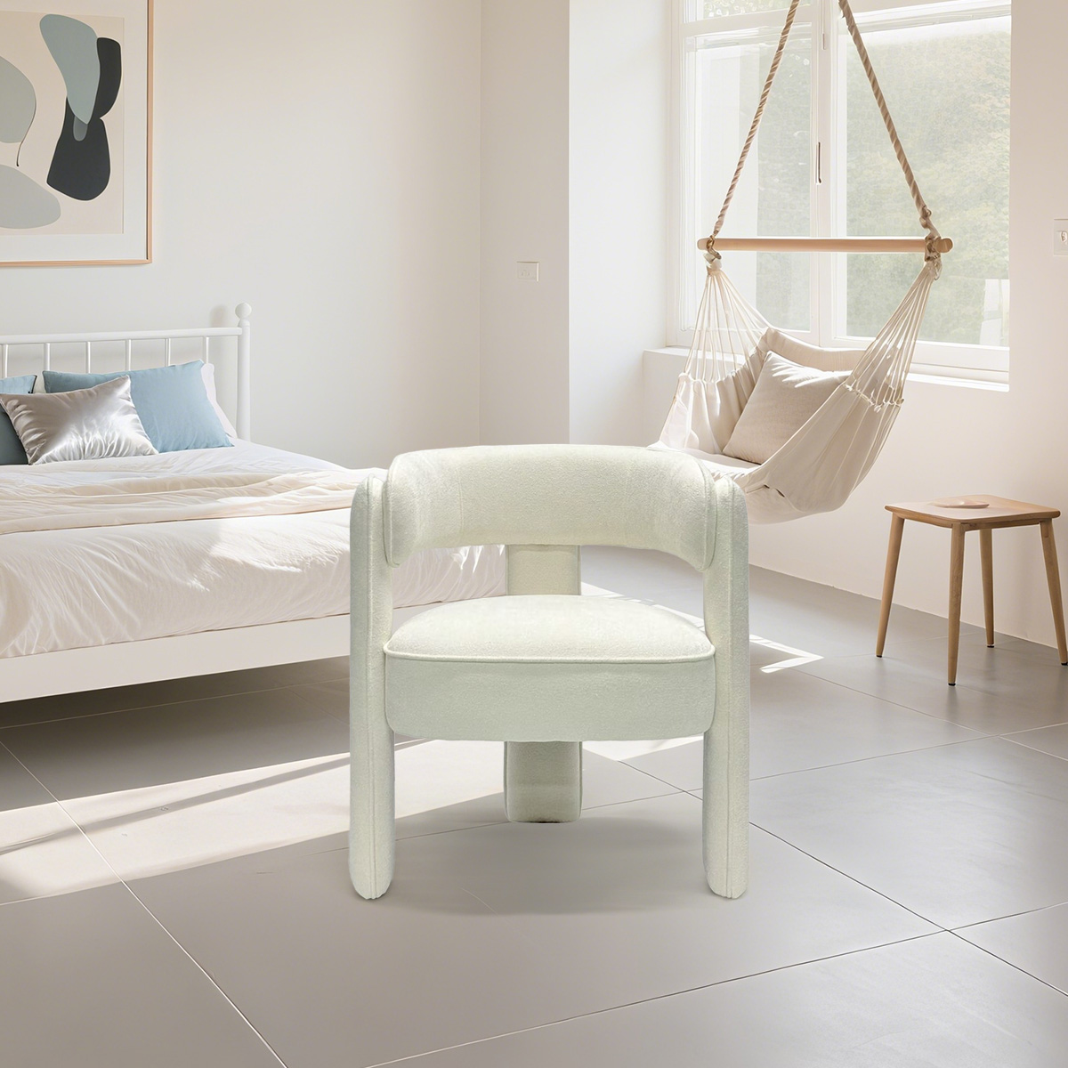 Modern White Boucle Barrel Accent Chair na may Open Back - Upholstered Dining & Living Room Armchair
