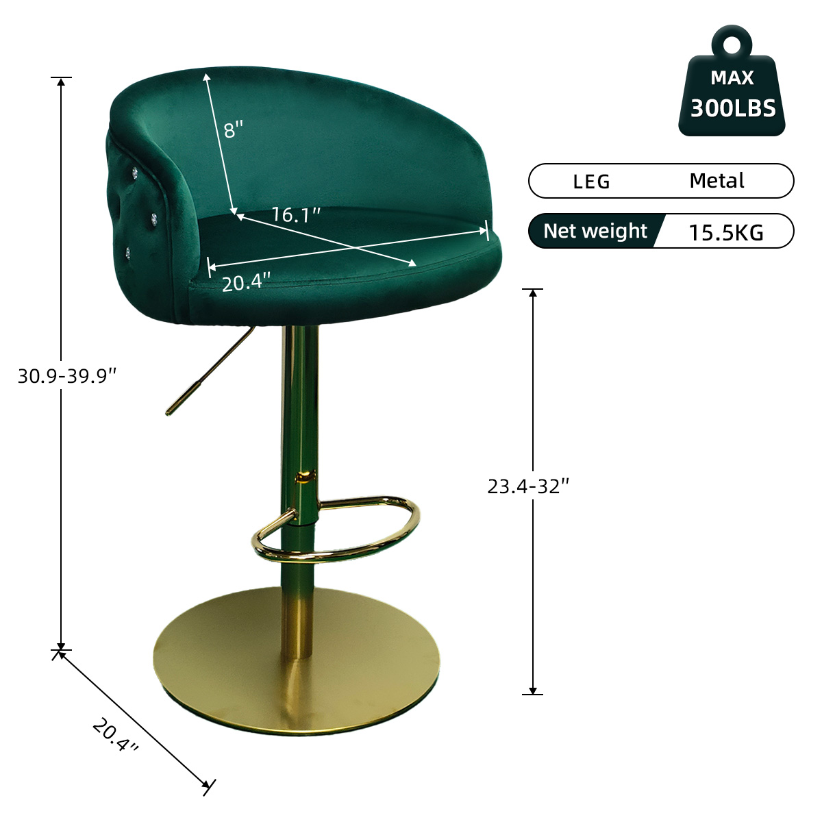 ● Madaling iakma ang taas mula 23.4 "hanggang 32" upang magkasya sa counter & bar taas