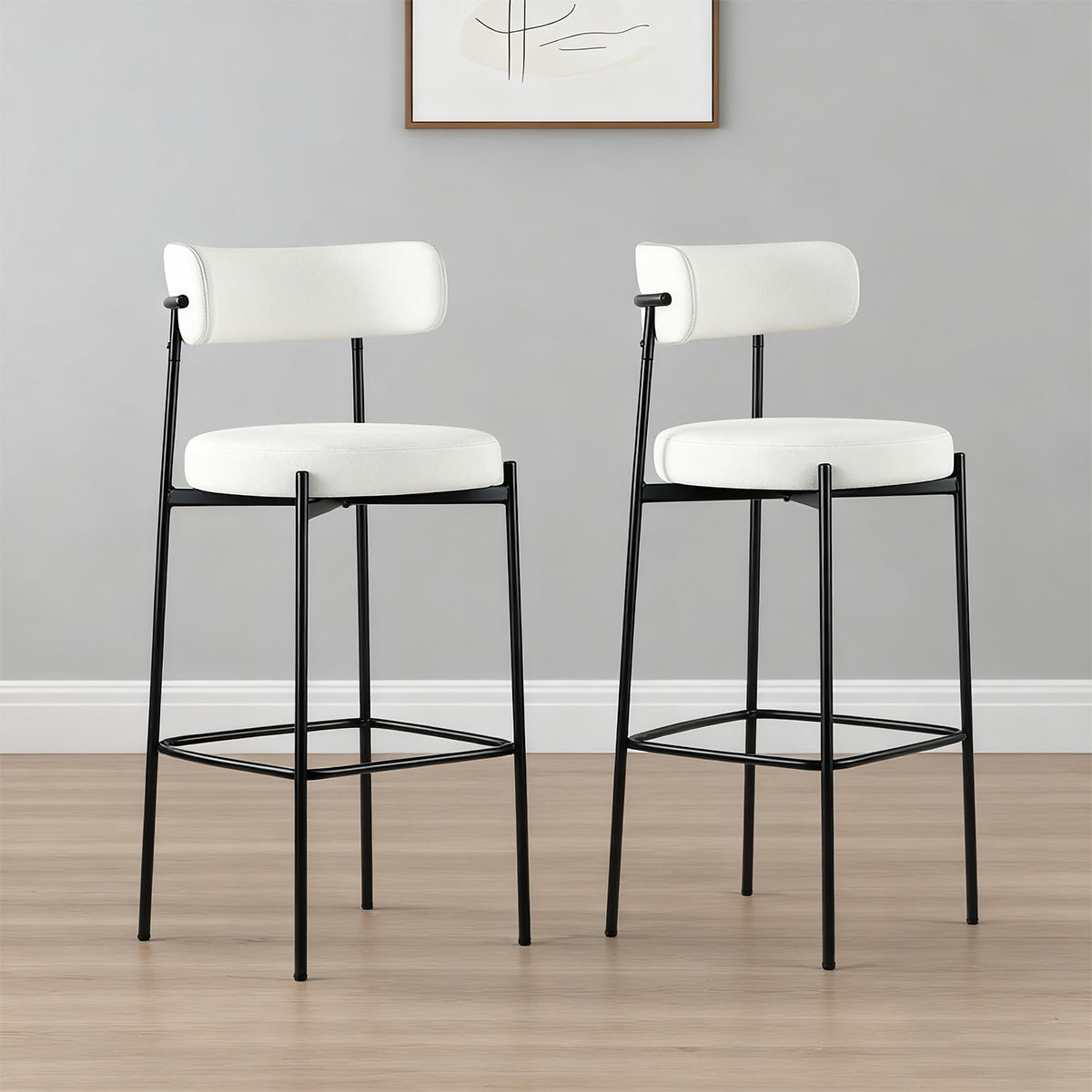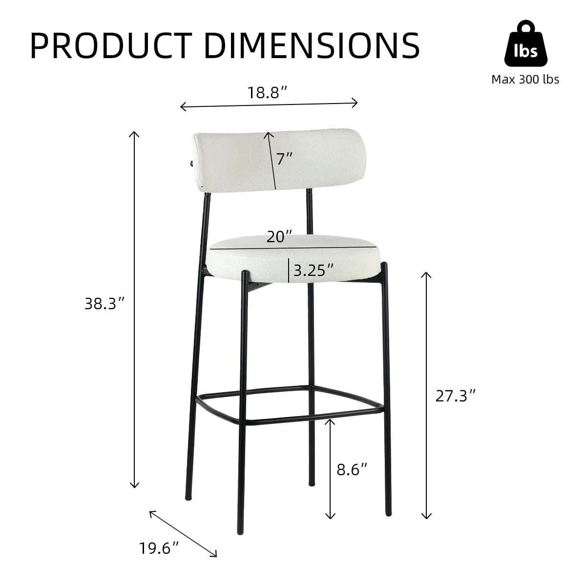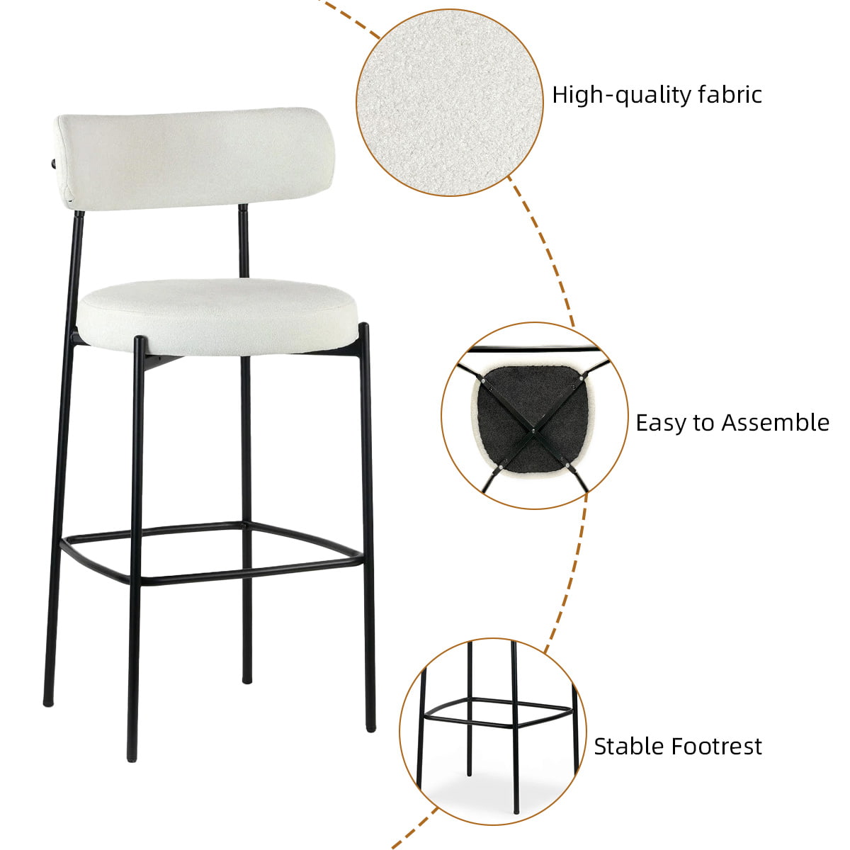 Modern White Bouclé Bar Stool na may Itim na Metal Legs - Upholstered Counter Height Bar Chair na may Backrest at Footrest Para sa Kitchen Island, Dining Room, at Home Bar
