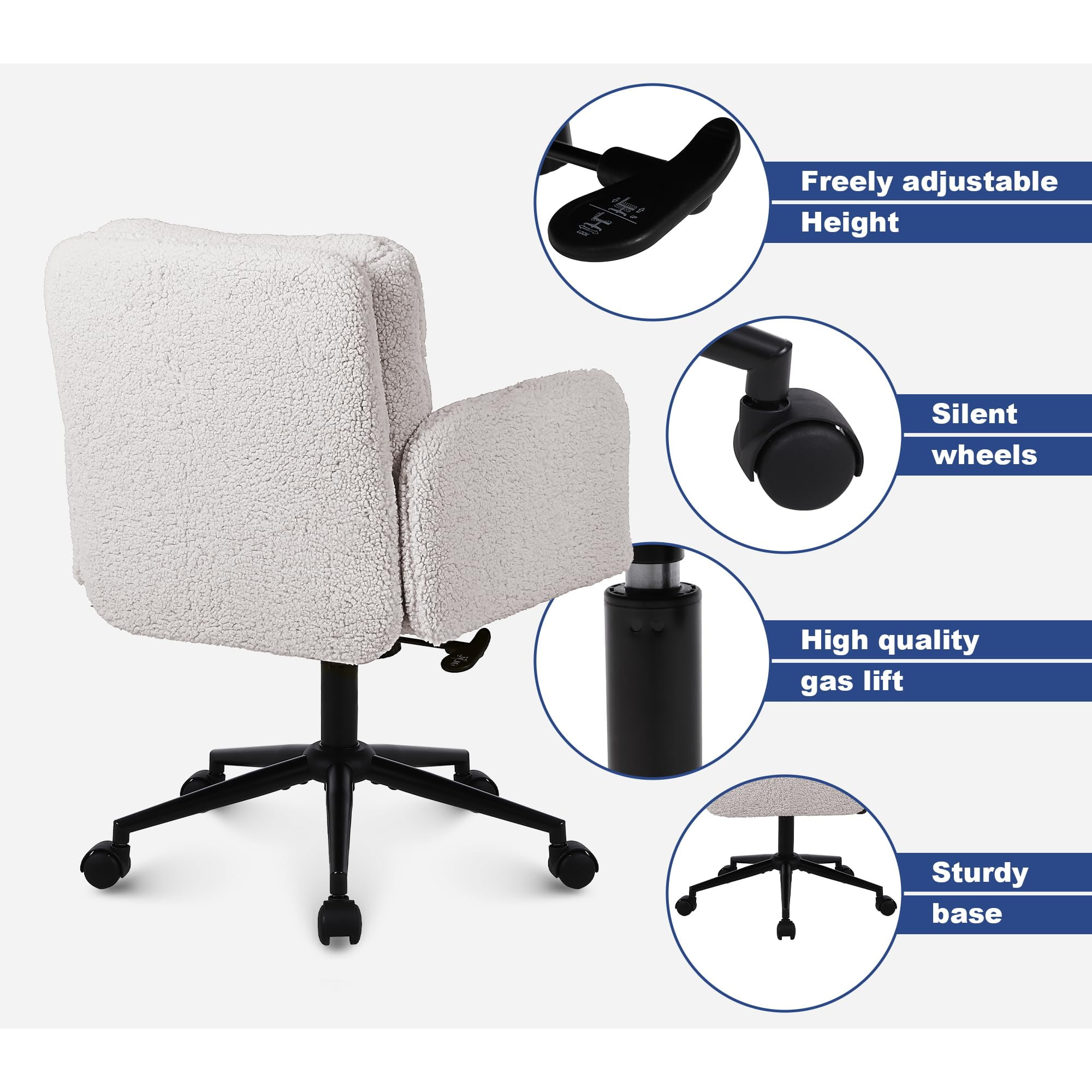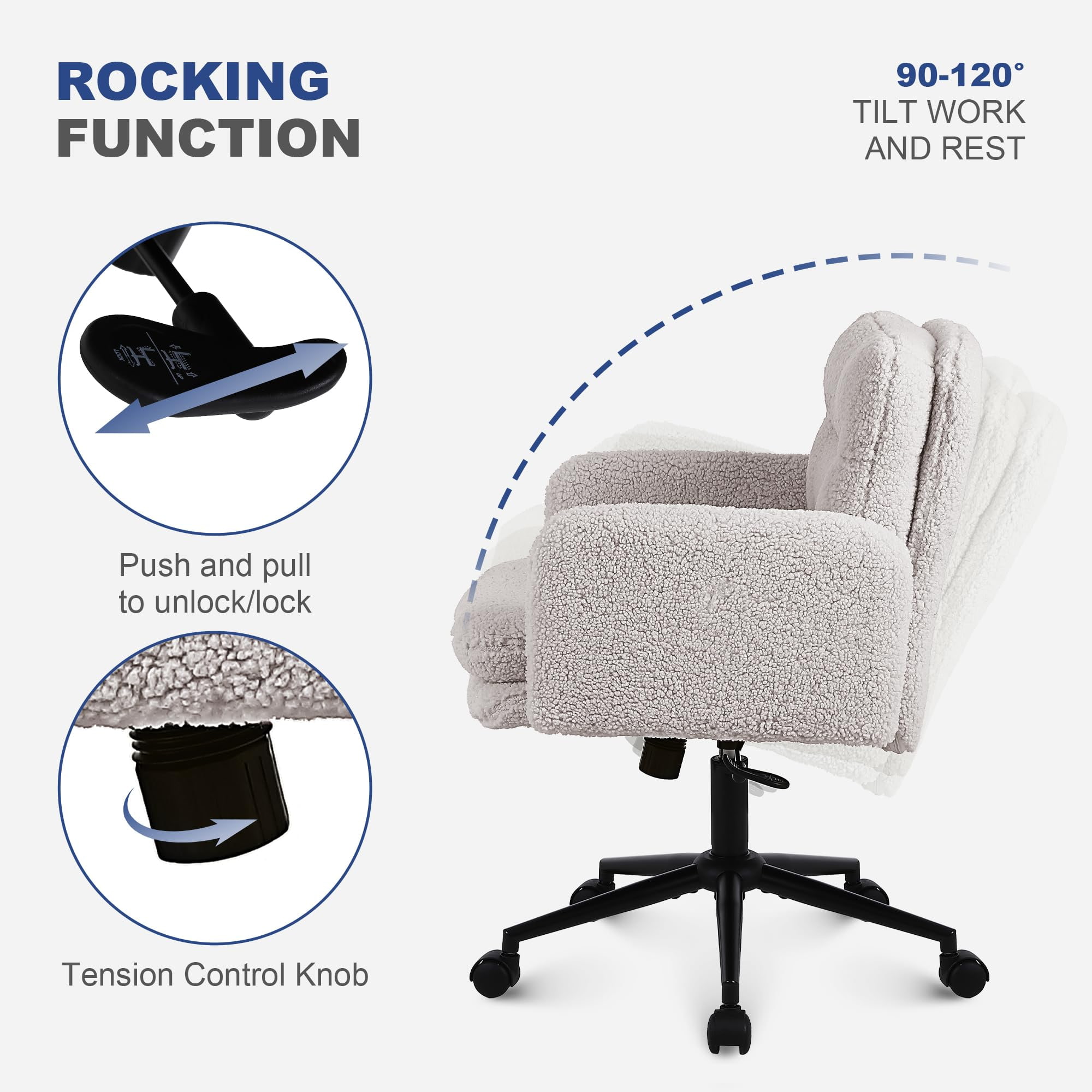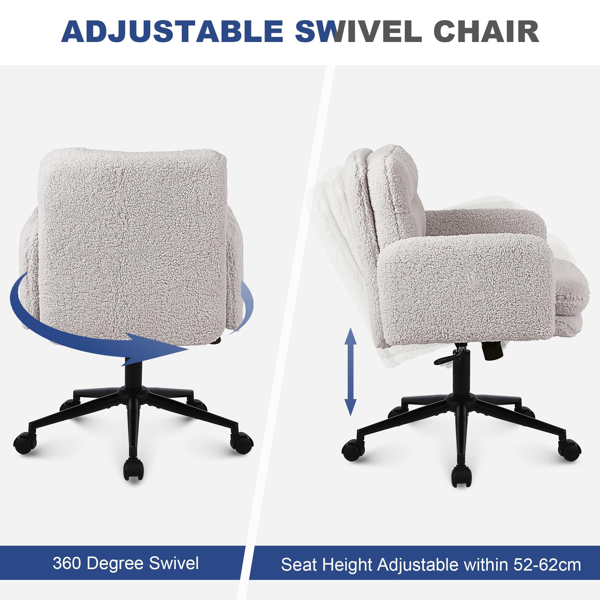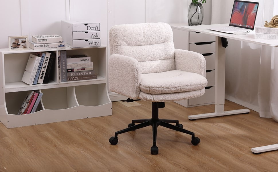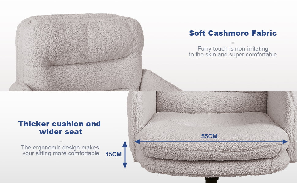 Faux Cashmere Adjustable Office Chair na may Swivel at Rocking Function – Soft Upholstered Desk Chair para sa Bahay at Vanity Use