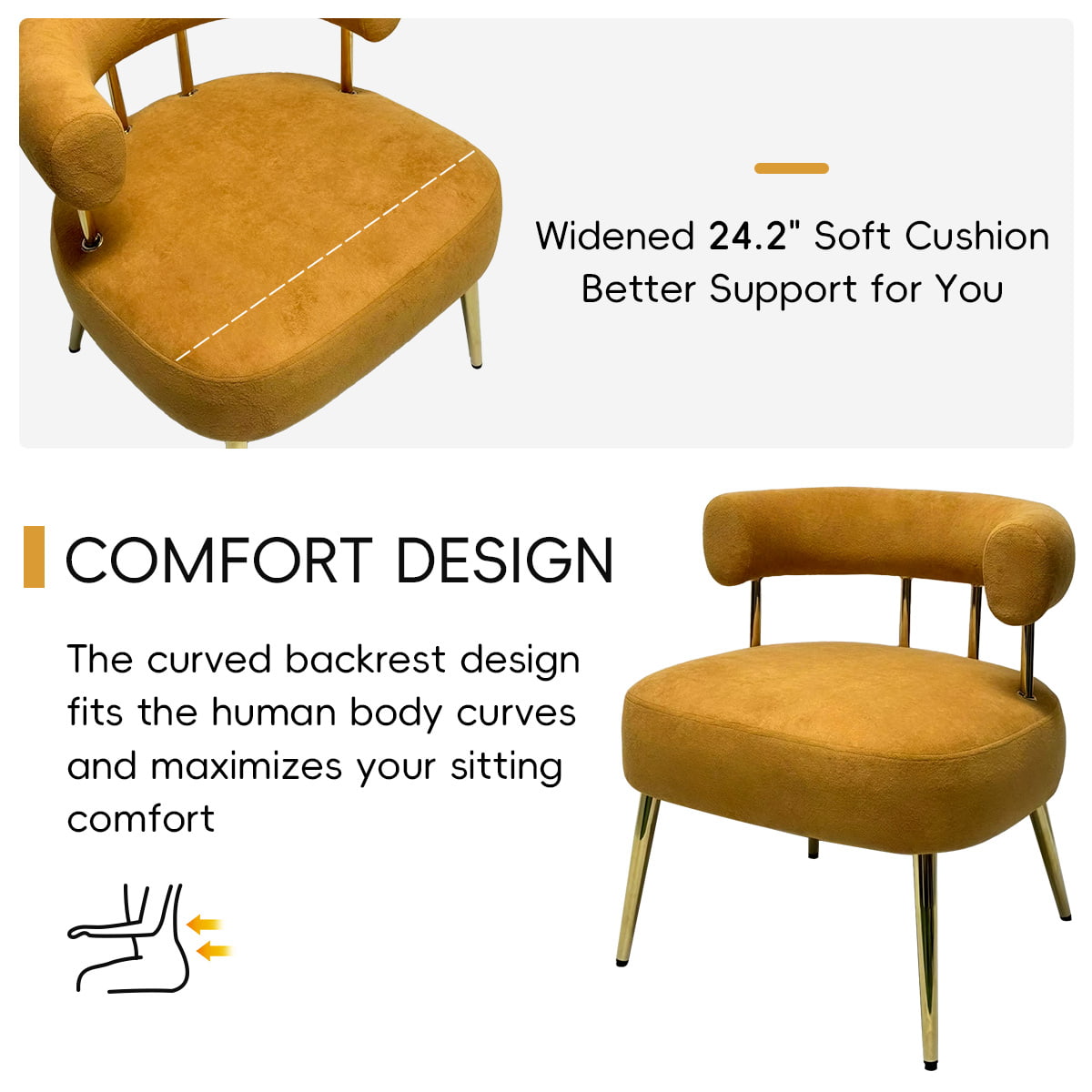 Ang mga gintong metal na binti ay hindi lamang nagdaragdag ng isang modernong ugnay ngunit nagbibigay din ng suporta sa rock-solid na may kapasidad ng timbang na 300 lbs. Kung naghahanap ka para sa isang naka-istilong upuan ng boucle accent, isang mid-siglo na vanity seat, o isang maginhawang upuan sa pagbabasa, ang maraming nalalaman piraso ay umaangkop nang walang putol sa anumang kapaligiran. Ang scratch-resistant, anti-piling, at madaling linisin, ito ay isang praktikal na pagpipilian para sa mga interior designer, reseller ng kasangkapan, at mga may-ari ng estilo.