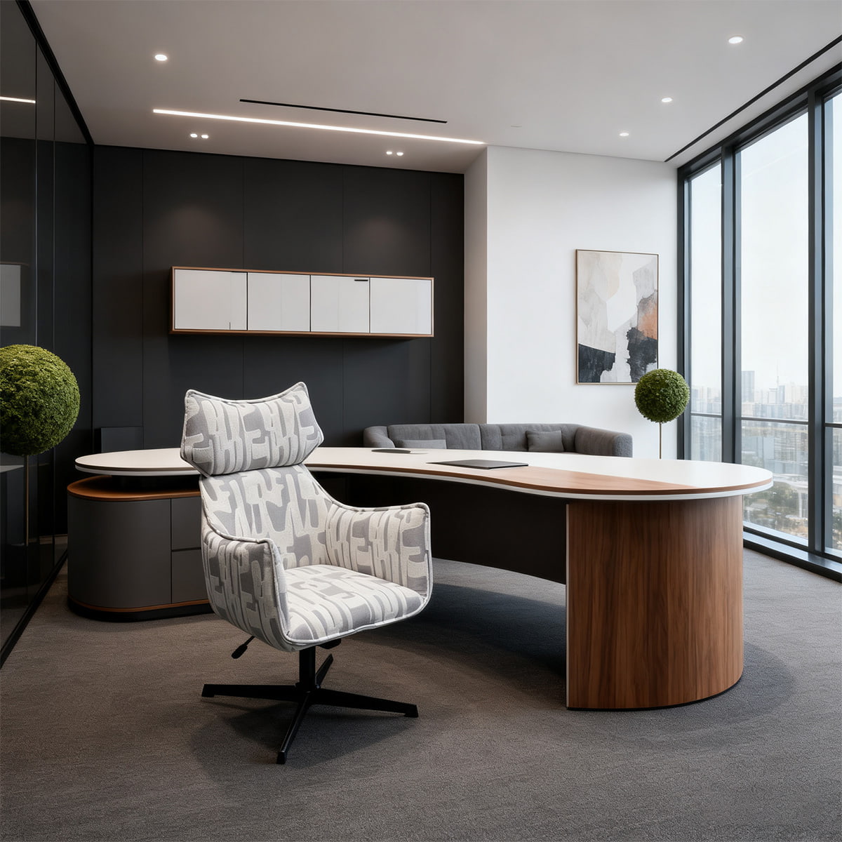Ang mataas na backrest at ergonomic contour cradle ang iyong gulugod, habang ang plush foam padding ay nagsisiguro na kaginhawaan na tulad ng ulap sa mahabang oras ng pagbabasa o nakakarelaks. Ang kontemporaryong kulay -abo na pattern at makinis na mga binti ng bakal ay nagdadala ng isang ugnay ng modernismo ng Europa sa anumang puwang - ito ay isang tanggapan sa bahay, hotel suite, o malikhaing silid -pahingahan.