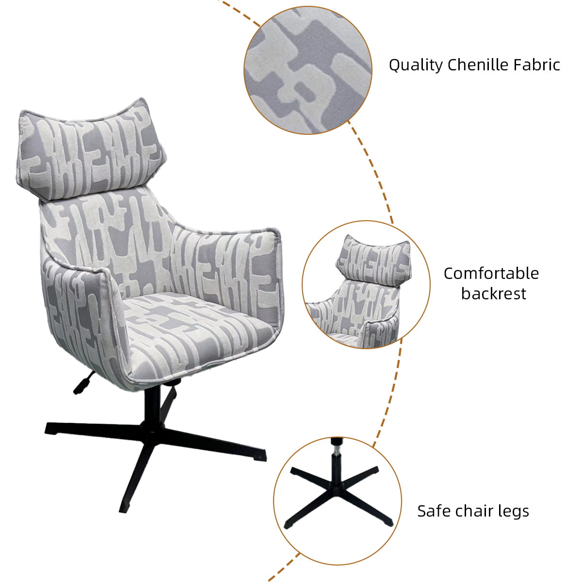 Ang aming nababagay na mga swivel armchair ay idinisenyo para sa mga modernong interior-na-combining ergonomic comfort, matibay na mga base ng metal, at high-end chenille upholstery. Tamang -tama para sa mga sala, mga tanggapan, hotel, at lounges, naghahatid sila ng parehong pagiging praktiko at pino na mga aesthetics.