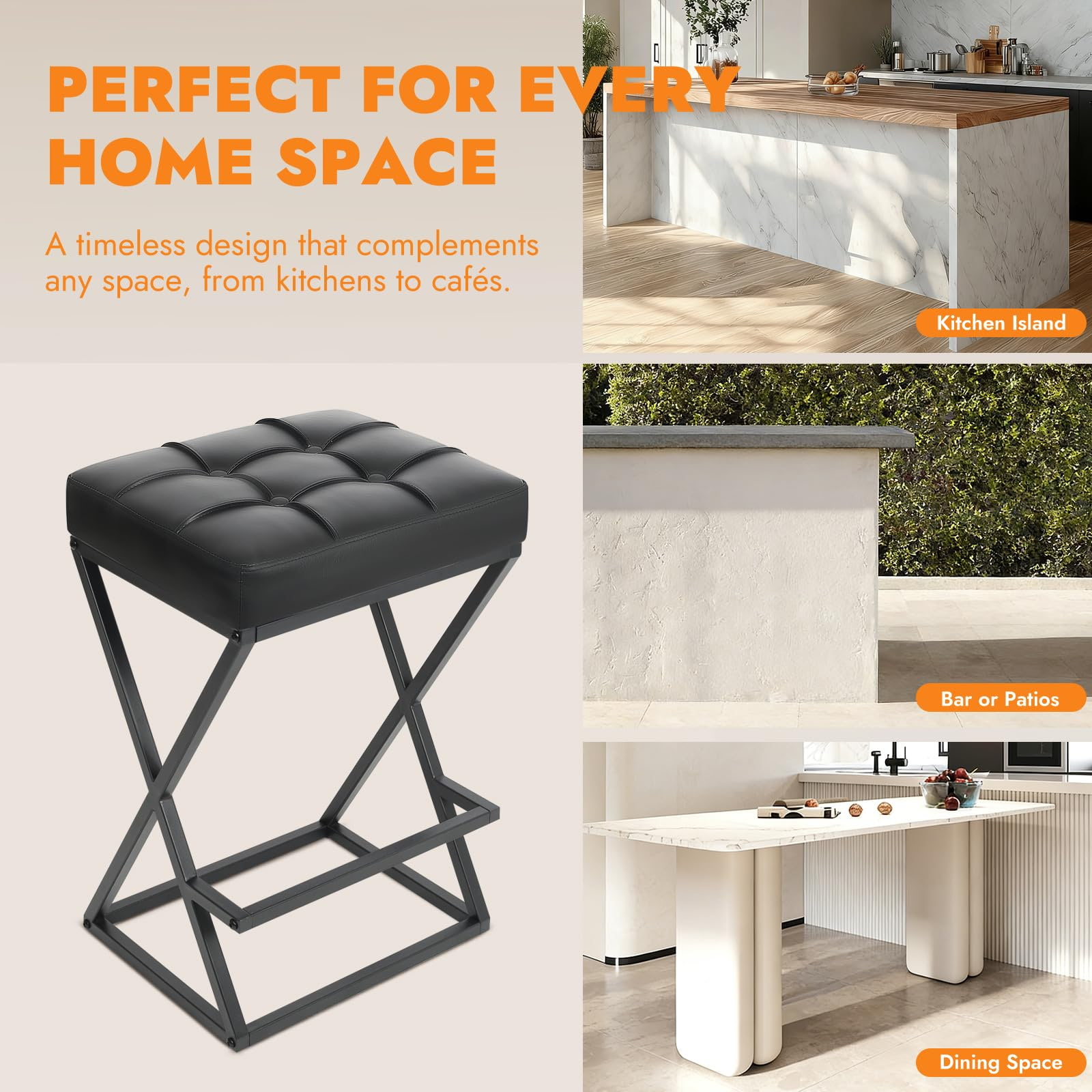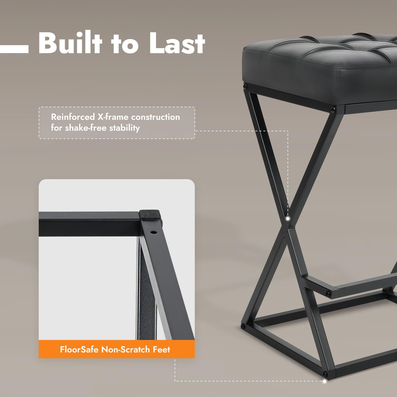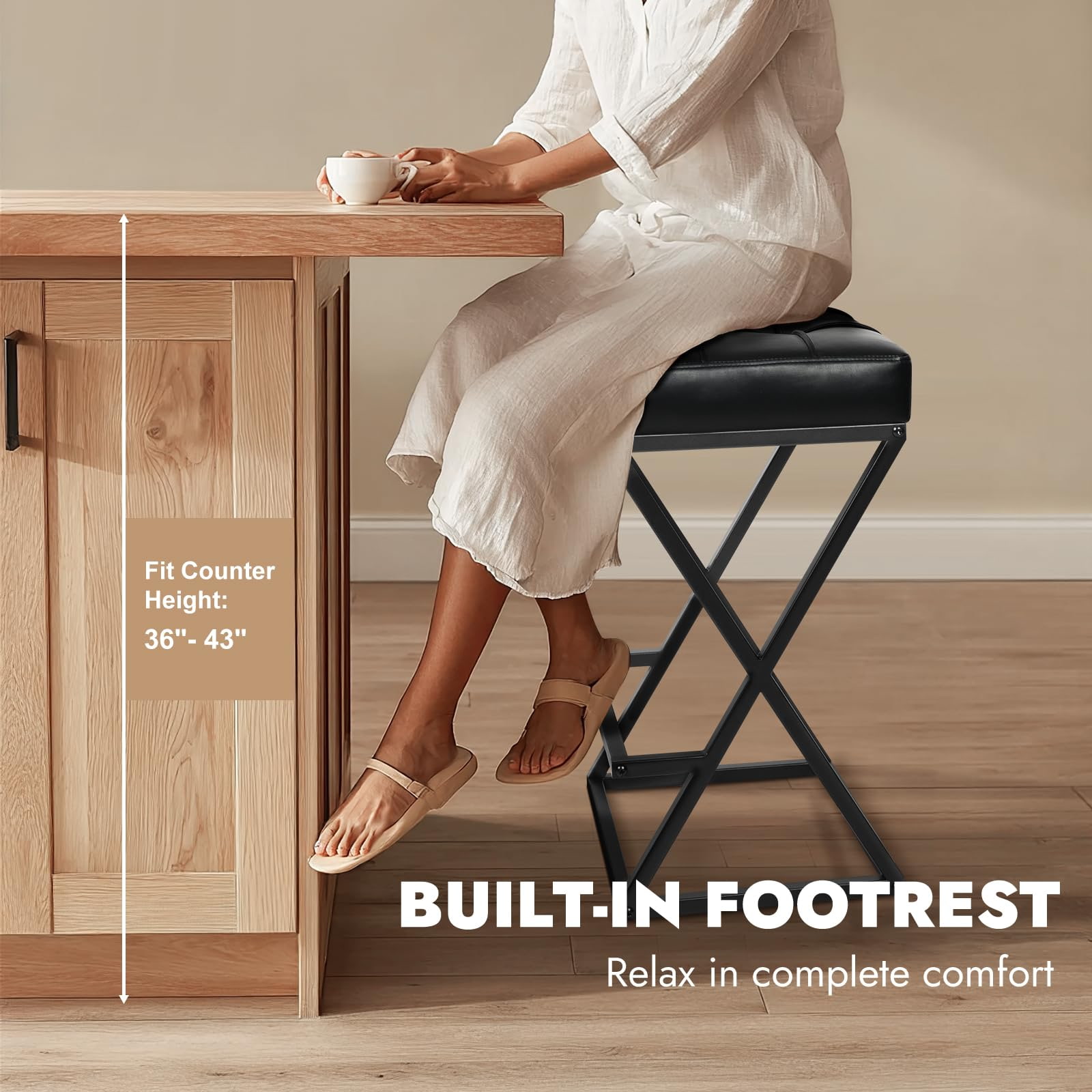 Counter Height Backless Bar Stools na may Upholstered Leather Seat, X-Frame Metal Stability na may Paanan para sa Kitchen Islands Black