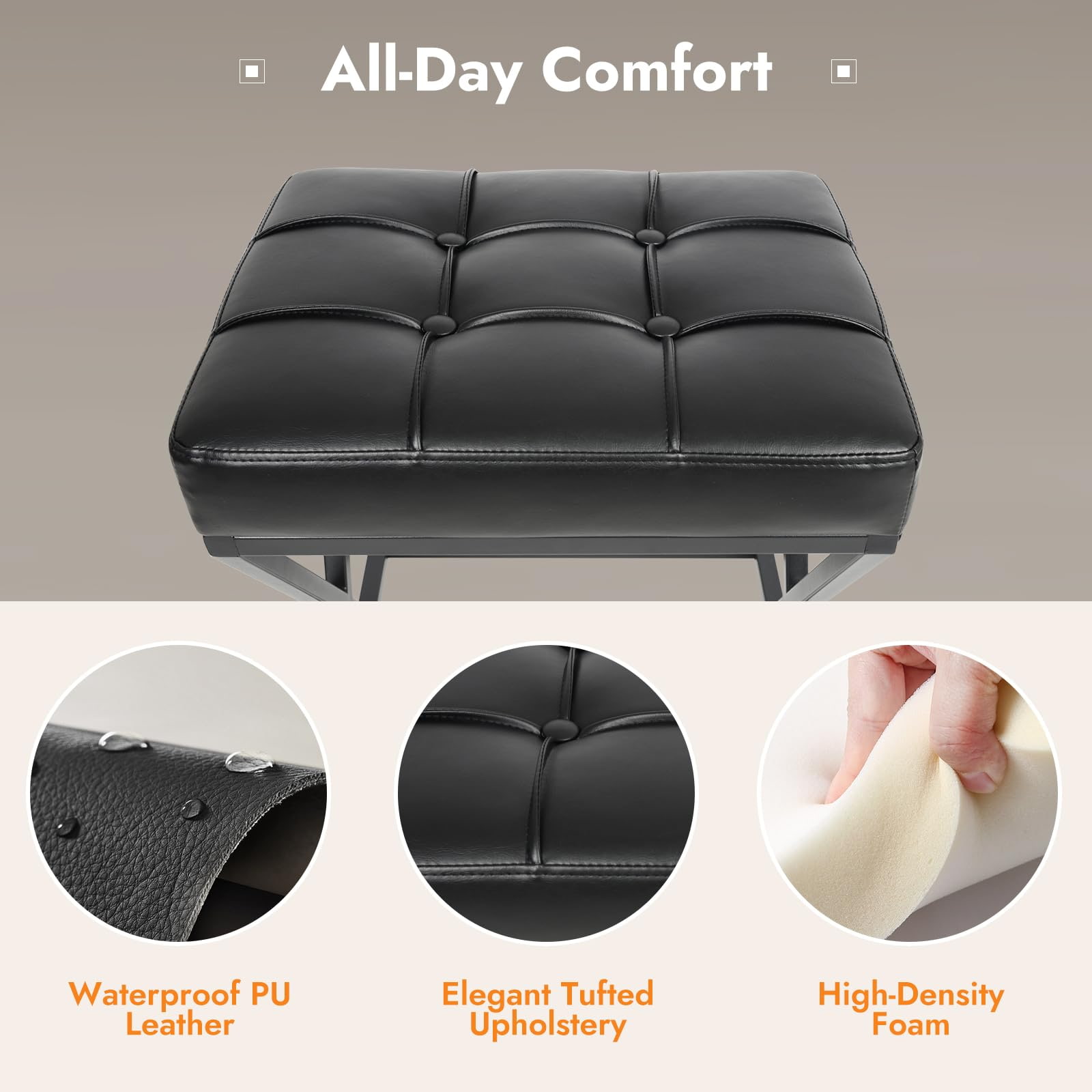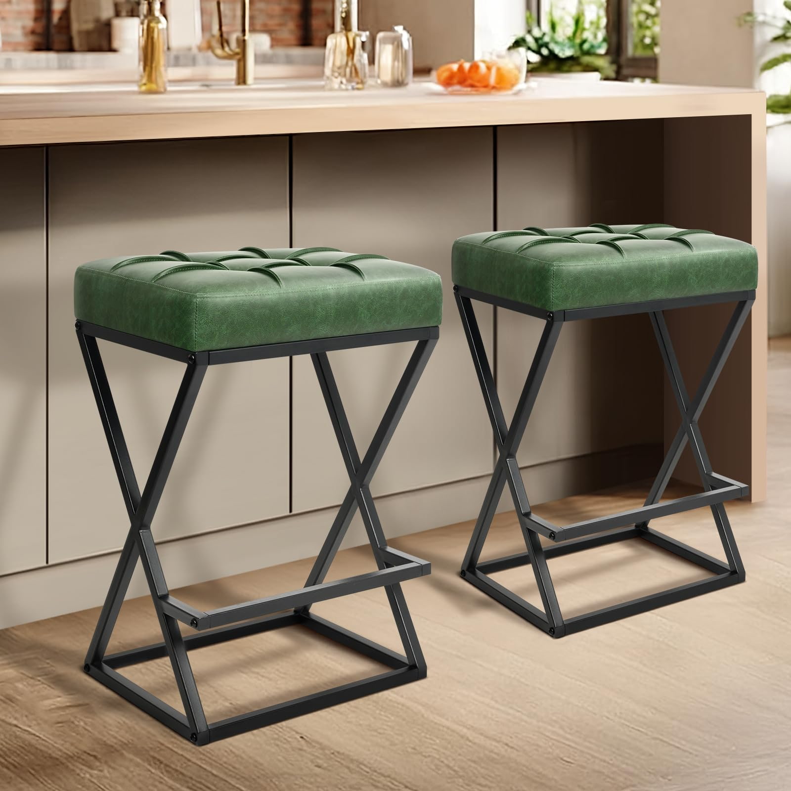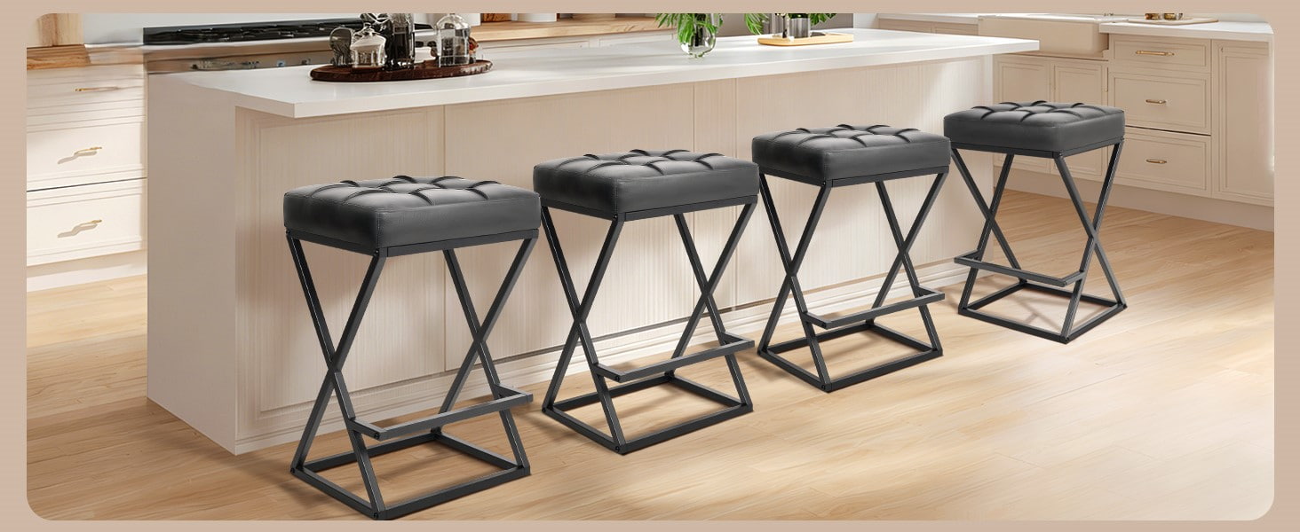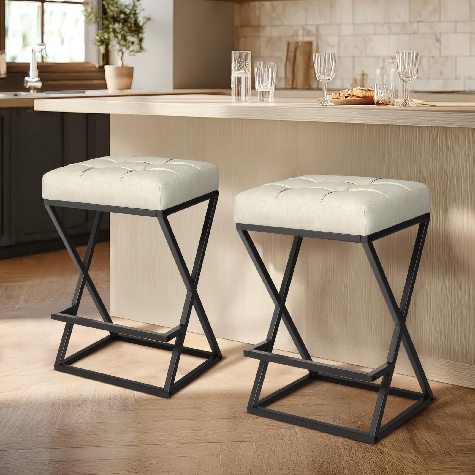 Counter Height Backless Bar Stools na may Upholstered Leather Seat, X-Frame Metal Stability na may Paanan para sa Kitchen Islands Black