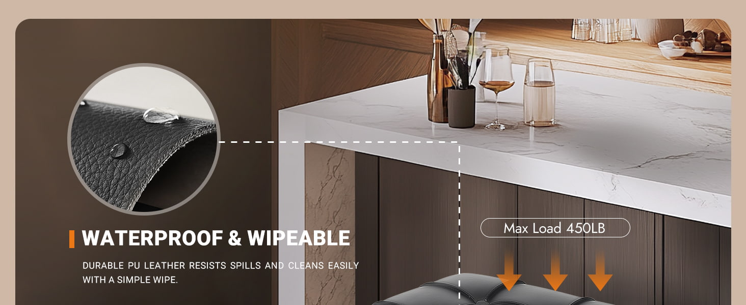 Ang hindi tinatagusan ng tubig, punasan ng malinis na PU leather ay lumalaban sa mga spill, mantsa, at pang-araw-araw na pagsusuot.