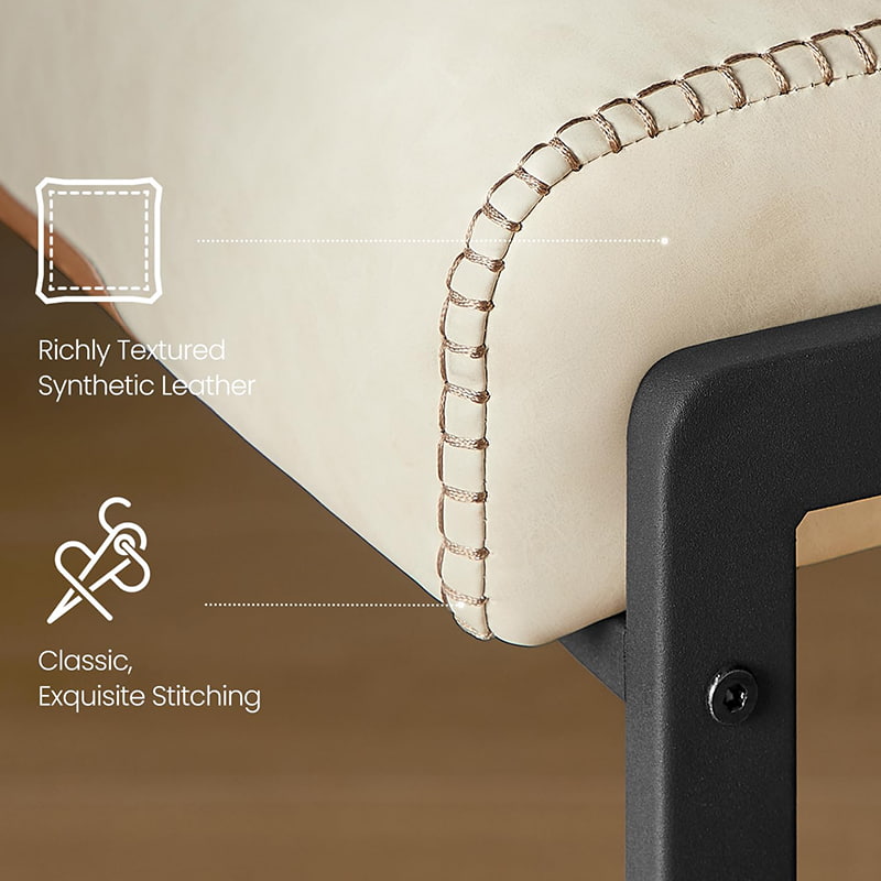 matuto paPinagsasama nitong mid-century na modernong counter-height bar stool ang malinis na may linyang metal na istraktura na may soft cream white synthetic leather upholstery para sa isang pino ngunit praktikal na solusyon sa pag-upo. Dinisenyo para sa mga isla ng kusina at mga dining counter, nagtatampok ang upuan ng napakaraming padded na upuan at isang naka-segment na backrest na naka-anggulo sa 103°, na nag-aalok ng balanseng ergonomic na suporta para sa pang-araw-araw na paggamit.